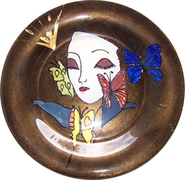 Bonbonnière en verre, marron bronze et or, peint à la main